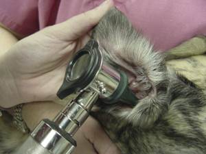 Необходимо исследовать горизонтальный и вертикальный каналы, проверить состояние барабанной перепонки. Перед отоскопией проводят очистку слухового прохода. Если собака проявляет признаки беспокойства и агрессии, приходится прибегнуть к седации.