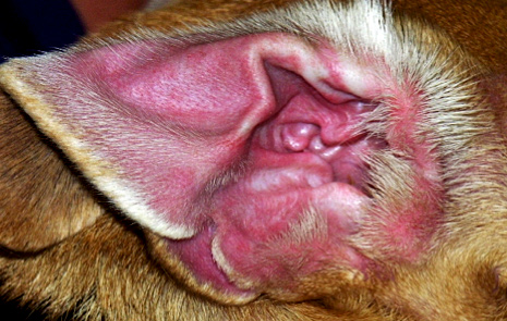 - возможно развитие серозных отитов на фоне атопического дерматита, у некоторых собак отит является единственным проявлением заболевания.