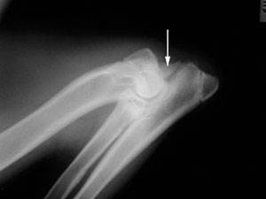 С помощью рентгена можно определить, есть ли собаки дисплазия локтевого сустава. Делается это путем идентификации основной проблемы или остеоартрита, появляющегося в результате. Три кости (плечевая кость, лучевая и локтевая кость) объединяются для формирования локтевого сустава, и они накладываются на рентгенограммах. Это делает идентификацию основного поражения проблематичной в некоторых случаях.