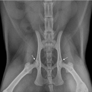 Заводчики собак во избежание дисплазии тазобедренных суставов выполняют длительную скрининговую проверку животных и только потом включают их в программу разведения. У кошек в возрасте до двух лет можно только предварительно оценить заболевание, окончательный диагноз ставится уже по достижении кошкой этого возраста. Исследование проводится с помощью рентгена и требует седации для того, чтобы достичь расслабления мышц и обеспечить правильную укладку.