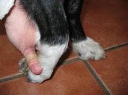 5-я степень: проявляется параличом с отсутствием глубокой болевой чувствительности менее 24 часов, контроль самостоятельного мочеиспускания отсутствует. Оценка глубокой болевой чувствительности - заключается в проверке способности собаки реагировать на сильный болевой раздражитель (сжатие зажимом надкостницы пальцев) сознательной реакцией. При положительном результате теста собака взвизгивает или облизывает губы, поворачивает голову к источнику боли, пытается укусить и т.д. Важно! Наличие рефлекса отдергивания (собака не поворачивает голову, но активно отдергивает раздражаемую лапу) не является признаком наличия глубокой болевой чувствительности.