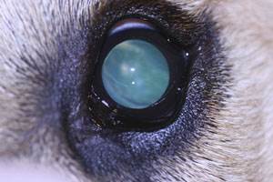 Катаракта – частичная или полная непрозрачность хрусталика глаза, которая сопровождается ухудшением или полной потерей зрения у собаки.