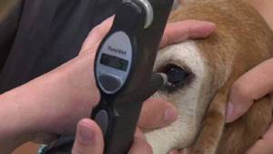 Показано полное обследование на приеме у офтальмолога. На приеме врач подробно опрашивает владельца, берет необходимые анализы крови. Проводит офтальмоскопию, обследование глазного дна, измеряет внутриглазное давление, проводит тест Ширмера (оценка количества продуцируемой слезной жидкости). Также возможно проведение УЗИ глаза.