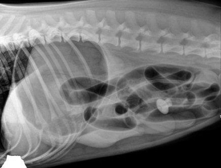 Зачастую поставить точный окончательный диагноз можно только проведя рентгеноконтрастное исследование. Это серия снимков, сделанная через определенные интервалы после выпаивания животному раствора сульфата бария. Контраст показывает скорость продвижения рентгеноконтрастный массы по кишечнику и обволакивает инородное тело, что также может способствовать его визуализации.