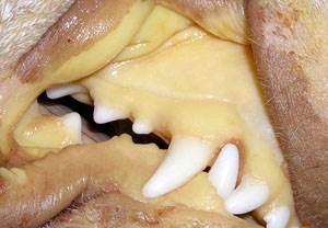 У некоторых собак и кошек развивается желтуха (желтое окрашивание белков глаз, десен, внутренней поверхности ушной раковины, открытых участков кожи).