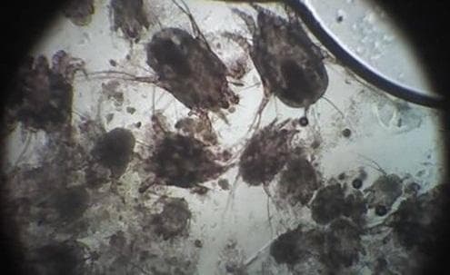 Главный признак отодектоза – сильный зуд в области ушной раковины. Если заглянуть в ухо собаки с отодектозом, то мы увидим темно-коричневый, почти черный налет. Иногда его так много, что он в буквальном смысле «отваливается кусками», образуя корки. Для диагностики отодектоза достаточно исследования мазка из наружного слухового прохода под микроскопом. Клещи, размер которых достигает 0,5 мм, обычно хорошо видны даже при небольшом увеличении. Также может проводиться так называемый “тест на черной бумаге” - клещи имеют белесую окраску и движение мелких светлых точек может быть замечено даже без микроскопа.