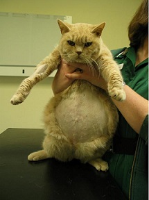 - Увеличение живота в объеме - асцит является наиболее заметным клиническим проявлением при “влажной” форме FIP. Кроме этого, выпот может образовываться в грудной и перикардиальной полости (совместно с выпотом в брюшную или изолированно), в этом случае отмечается нарушение дыхания;