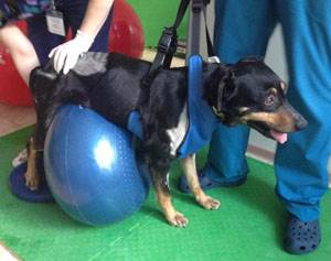 Также дополнительная поддержка используется при занятиях на фитболах и балансировочных досках – животным помогают поддерживать правильный баланс, заново обучают стоять в квадрипедальной (анатомической, с опорой на четыре конечности) позиции.
