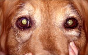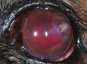 В тяжелых случаях вся передняя камера глаза заполнена кровью, животное выглядит полностью слепым.