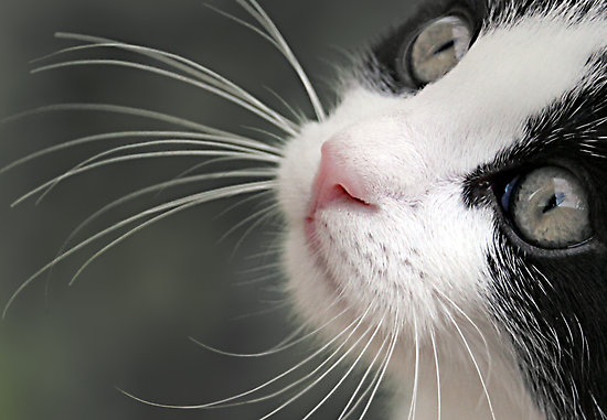 Усами обычно называют самые заметные вибриссы – на верхней губе, но эти чувствительные волоски расположены и на подбородке, и на щеках, и над глазами. Единичные вибриссы спрятаны в шерсти всего тела кошки, много их между пальцами и на нижних отделах лап.