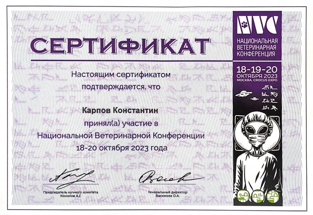 2023 год – принял участие в Санкт Петербургской ветеринарной конференции.