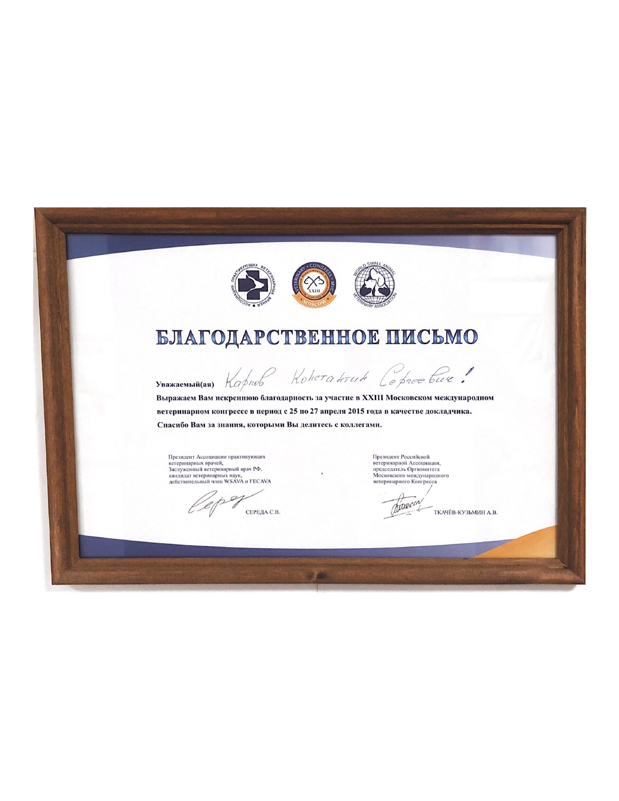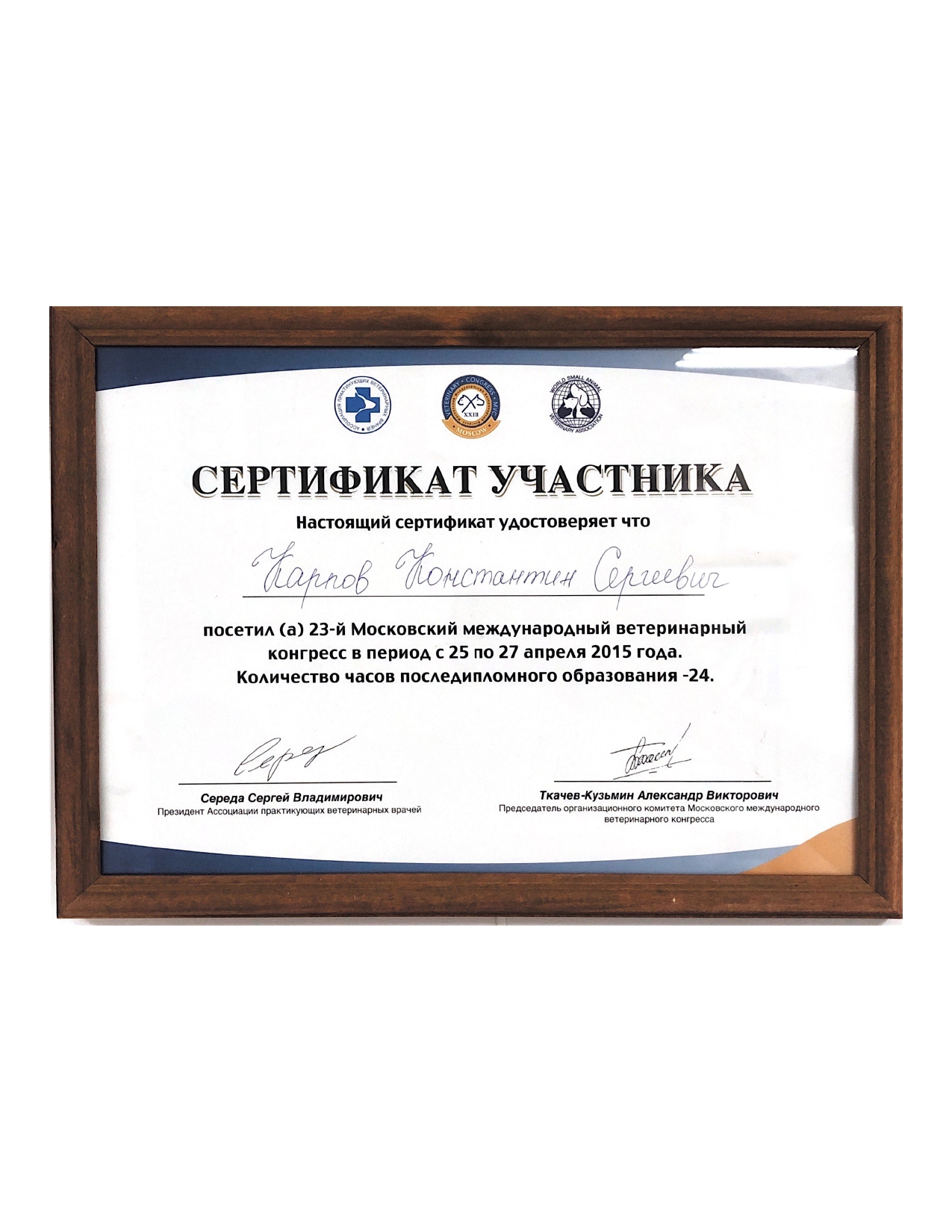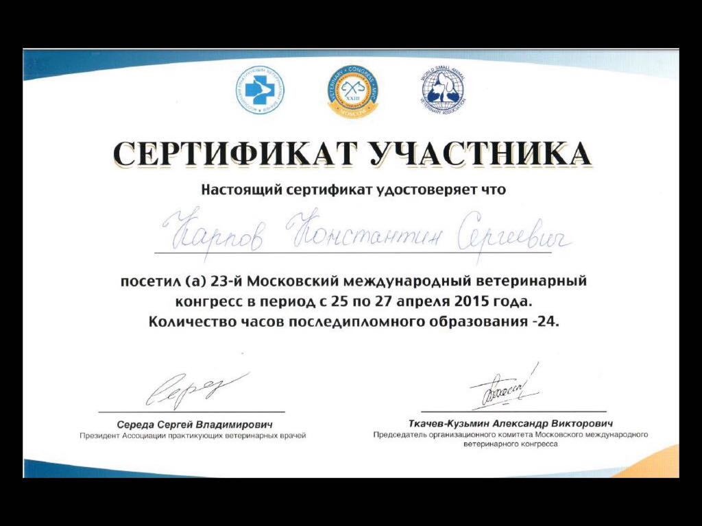 2015 год – слушатель на Московской ветеринарной конференции.
