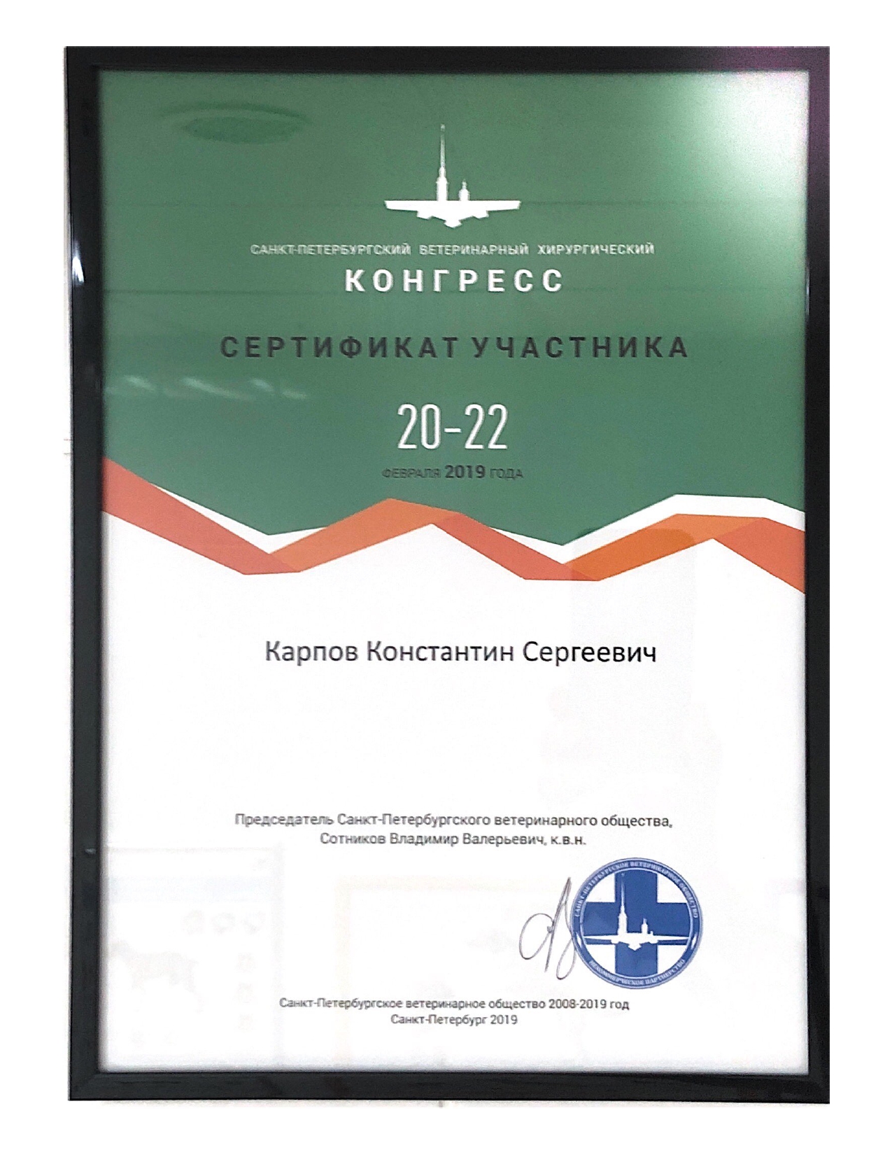2019 год – слушатель на Санкт-Петербургской ветеринарной конференции по хирургии.