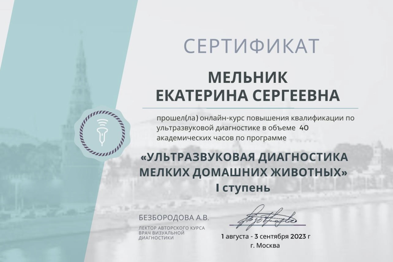 2017 — практический курс по ультразвуковому исследованию мелких домашних животных в образовательном центре «Медвет».