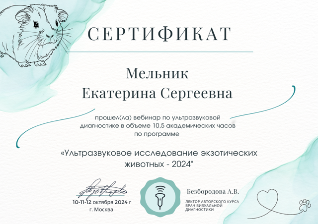2024 — курс «Ультразвуковое исследование экзотических животных», лектор Безбородова А.В.