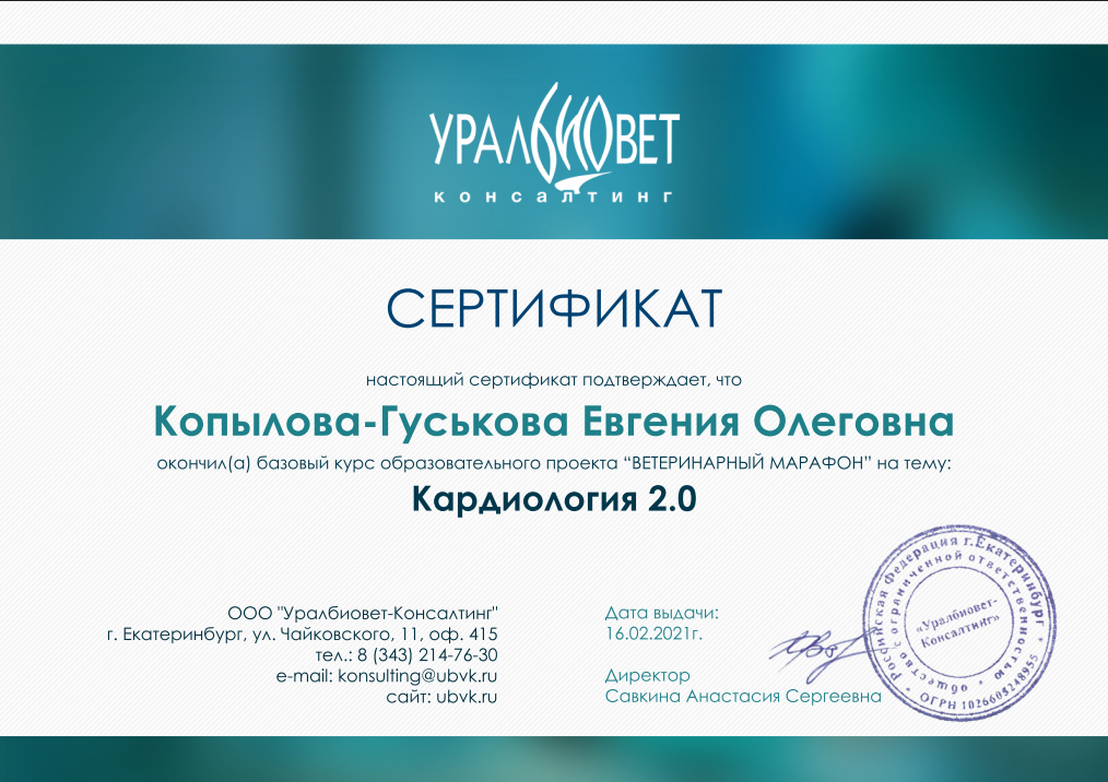 2021 — базовый курс образовательного проекта «Ветеринарный марафон» на тему: Кардиология 2.0.