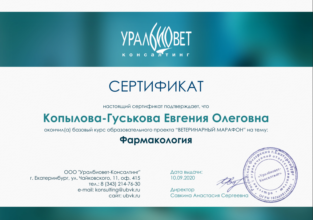 2020 — базовый курс образовательного проекта «Ветеринарный марафон» на тему: Фармакология.