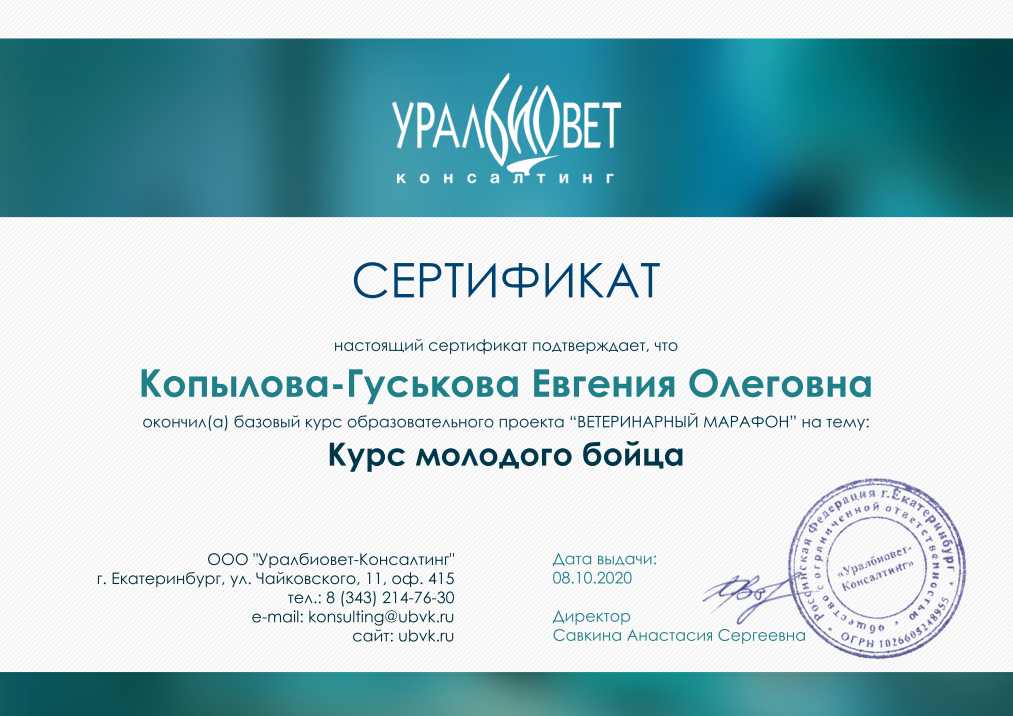 2020 — базовый курс образовательного проекта «Ветеринарный марафон» на тему: Курс молодого бойца