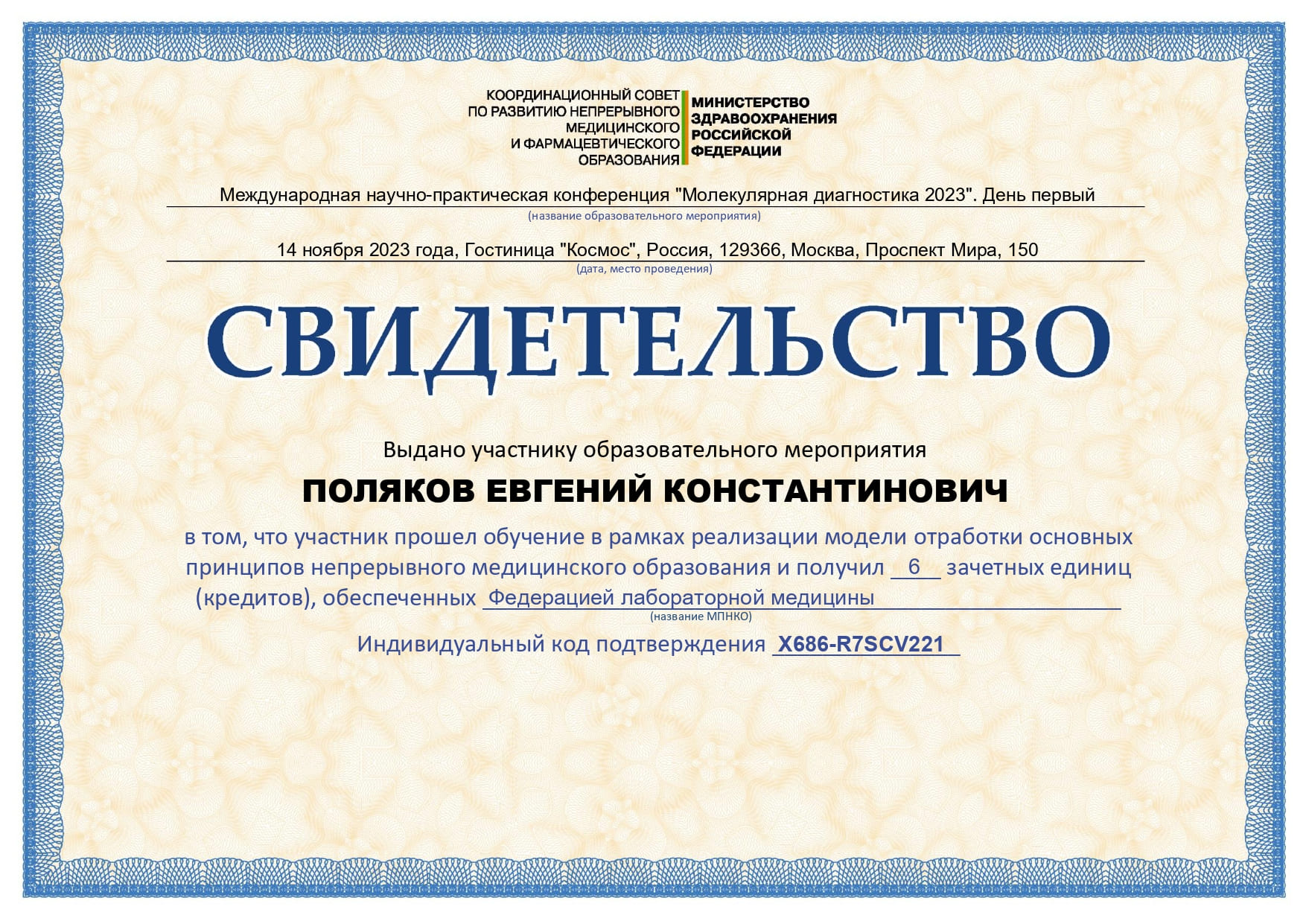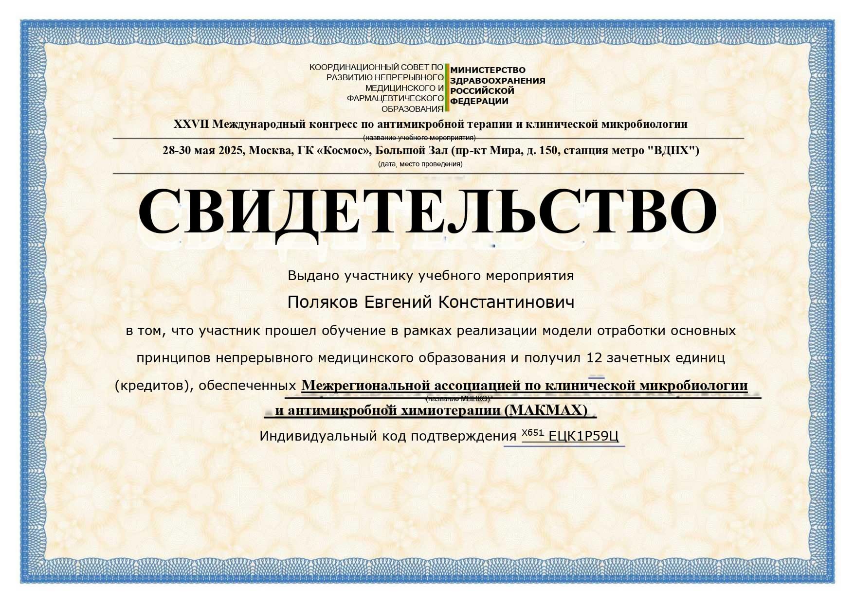 2022 год – повышение квалификации «Безопасность работы с микроорганизмами III-IV групп патогенности» НАНО «Институт Профессионального Образования».